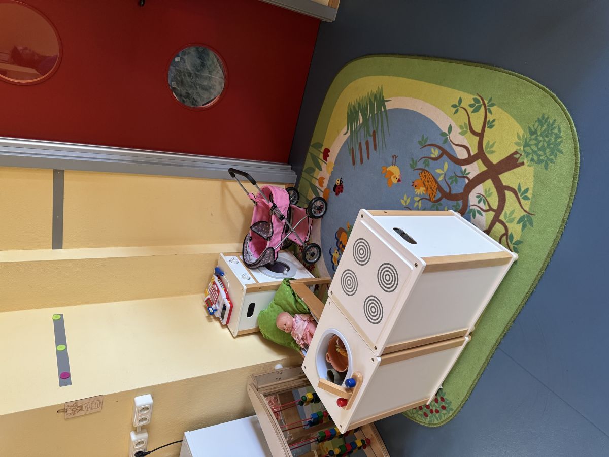 Des Weiteren verfügt die Gruppe über eine vielfältige Spielecke, in der unsere Kinder ihren Sinnen und Fantasien freien Lauf lassen können. Über Baumöglichkeiten aus Lego und Magneten, Steckspiele, Spielfahrzeugen, eine Kochecke und Puppenspielmöglichkeiten ist alles dabei.