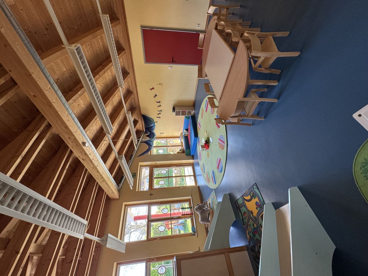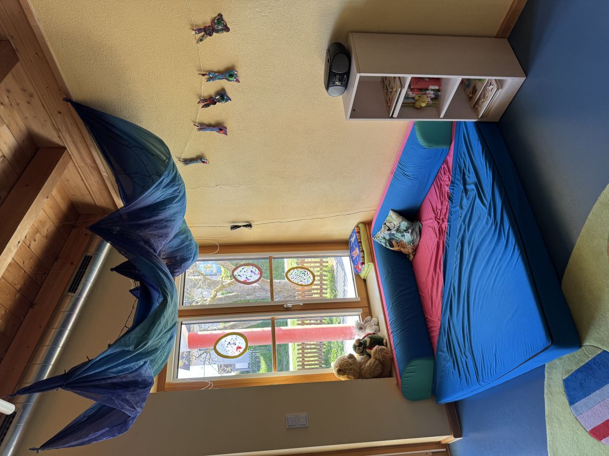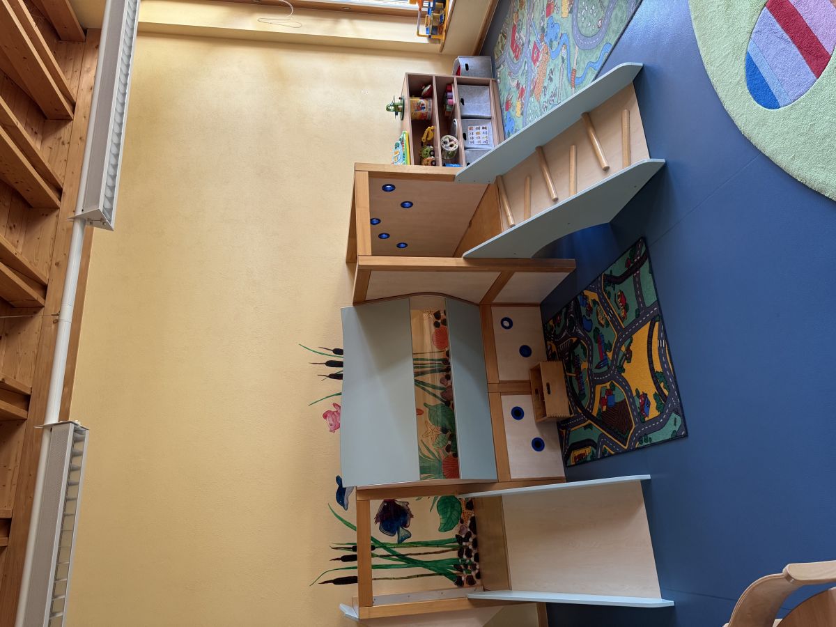 Die Hängeschaukel ist bei unseren Kindern besonders beliebt. Sie fördert die Wahrnehmung von Gleichgewicht und ist natürlich ein großer Spaß. Eine Kletter- und Rutschmöglichkeit unterstützt die Kinder in ihrer motorischen Entwicklung und bietet die Möglichkeit sich innerhalb des Gruppenraums auszulasten.
