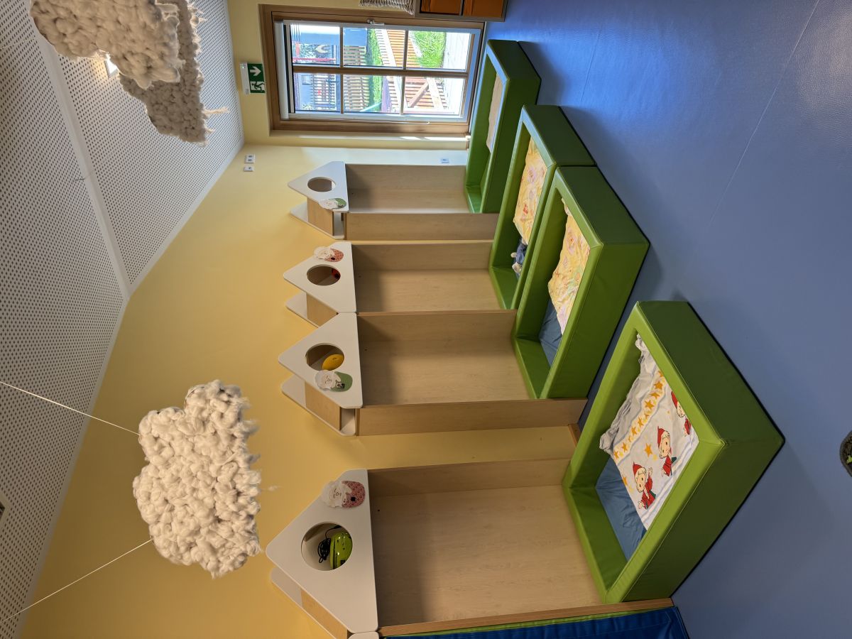 Die Mäusegruppe verfügt über einen Schlafraum, in dem auch wir Pandas zur Ruhe kommen und Mittagsschlaf halten.
